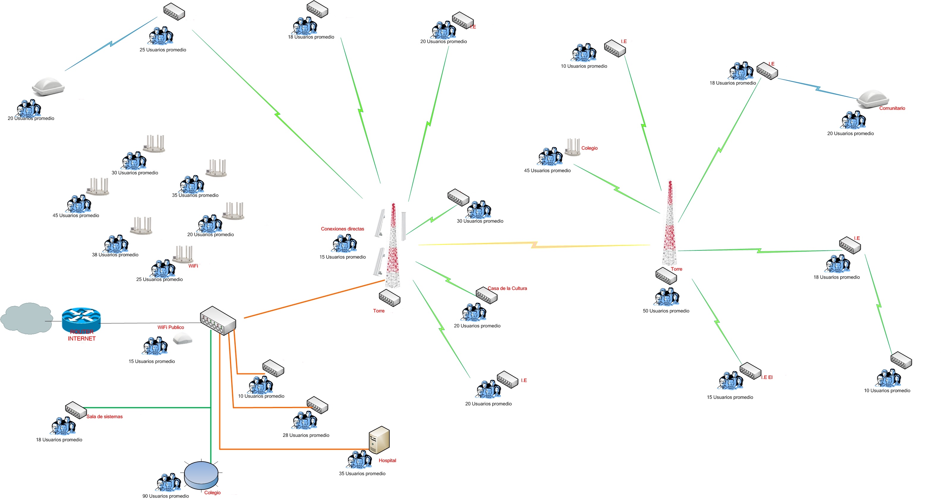 Es por este motivo que se decidio en la creacion de una red hibrida que se encargara de la distribucion y control del ancho de banda contratado con el operador local.